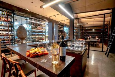 A sleek wine bar in Bazari on Orbeliani market, Collectionner offers some of Georgia’s most renowned wines and spirits to a high-class crowd. Solid teak table tops and bar stools were produced by ANADA Limited’s craftspeople, as well as some detailed wine racks and other smooth accessories.
