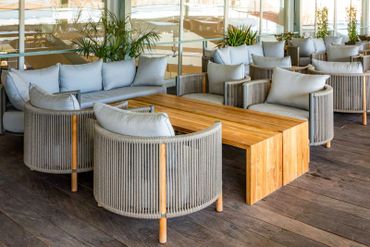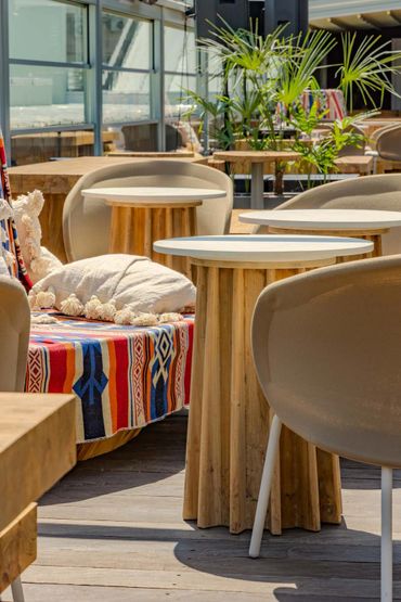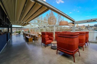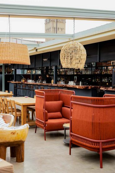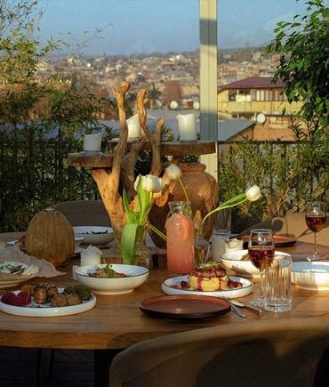 The Terrace in Bazari on Orbeliani market brings a lighter, more boho feel in a semi-outdoor setting, making for one of Tbilisi’s most sought- after atmospheres every evening. ANADA Limited created an array of timber and rattan chairs and sofas, as well as beautiful teakwood long tables, topped-off with chic range of light shades and other unique décor.